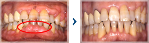 歯周病により歯肉が増殖している状態を治療により改善