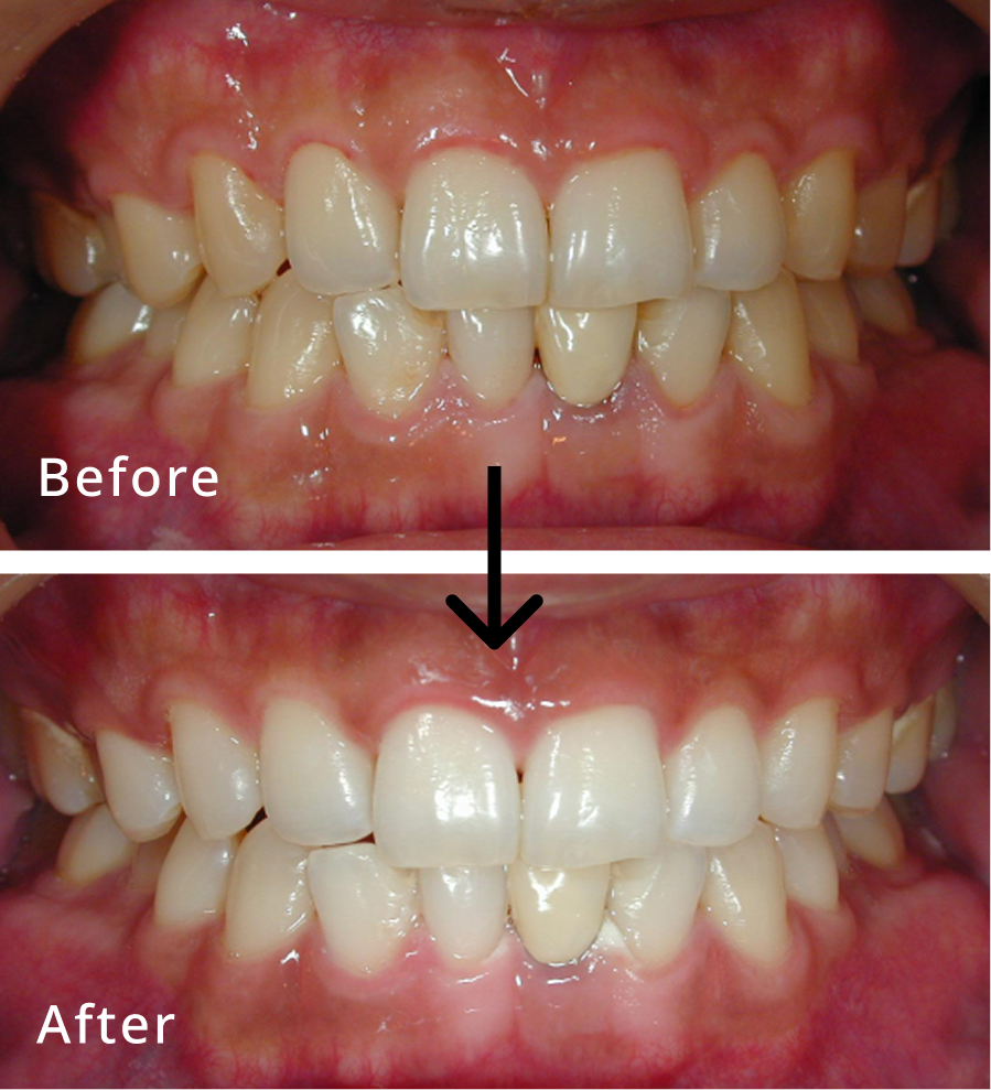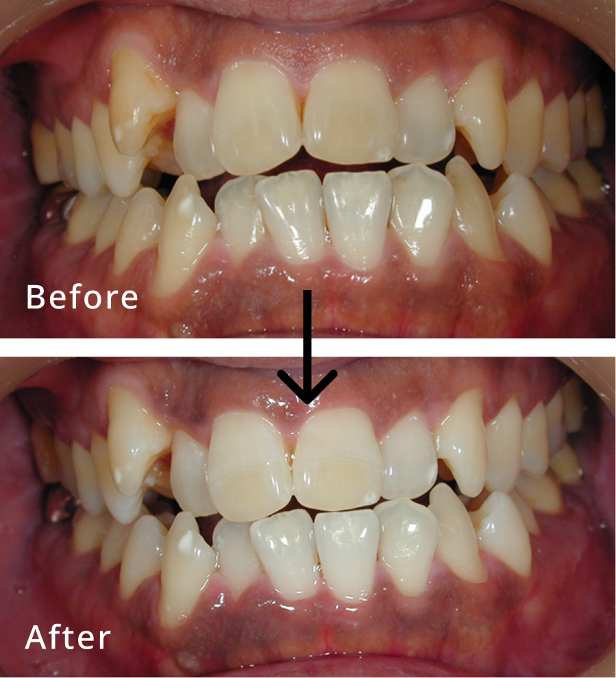 施術前に、歯の表面の汚れや歯石を除去します。歯石がなくなることで、ホワイトニング剤が均一に作用します。